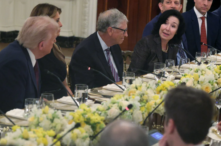 总统川普亲自坐镇,左右分列的是脸书创办人扎克伯格和第一夫人梅兰妮亚,再往旁边依次是比尔·盖茨、库克、皮查伊、布林、奥特曼、苏姿丰等重量级人物。这样的阵容,被媒体形容为“科技界的奥斯卡”。